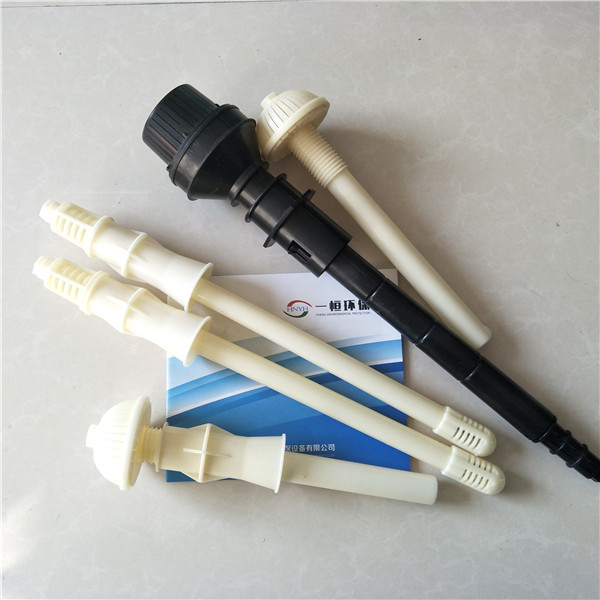 長(zhǎng)柄濾頭安裝在濾板上(濾板由鋼筋混凝土澆鑄),其主要作用使生物濾池底部水及氣聯(lián)合反沖洗時(shí)達(dá)到配氣配水均勻。長(zhǎng)柄濾頭采用ABS工程塑料制成,承壓強(qiáng)度高,使用壽命長(zhǎng),由濾帽、濾桿、預(yù)套管、橡膠墊圈等構(gòu)成。