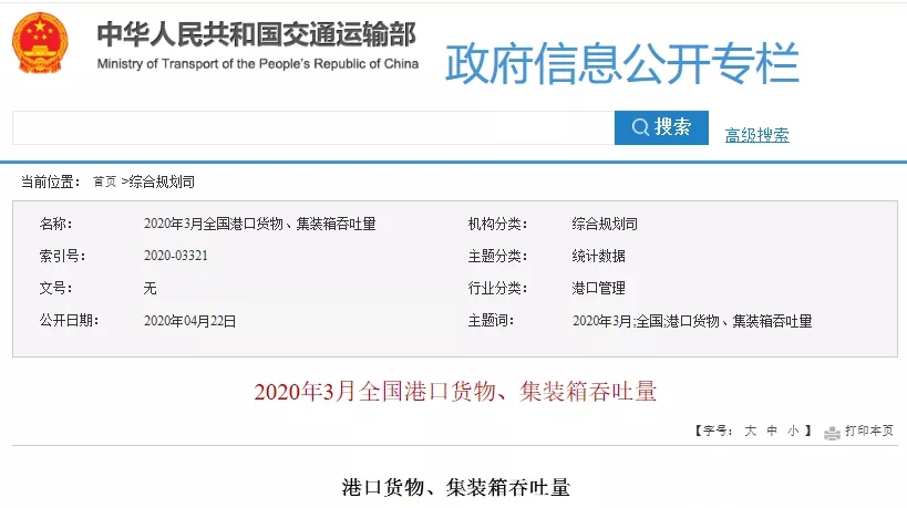 22日,交通運(yùn)輸部發(fā)布2020年3月及今三個(gè)月全國(guó)各大港口貨物、集裝箱吞吐量情況。一季度,全國(guó)港口貨物吞吐量同比下跌4.6%;外貿(mào)貨物吞吐量同比增長(zhǎng)0.3%;集裝箱吞吐量5,518萬(wàn)TEU,同比下跌8.5%。
