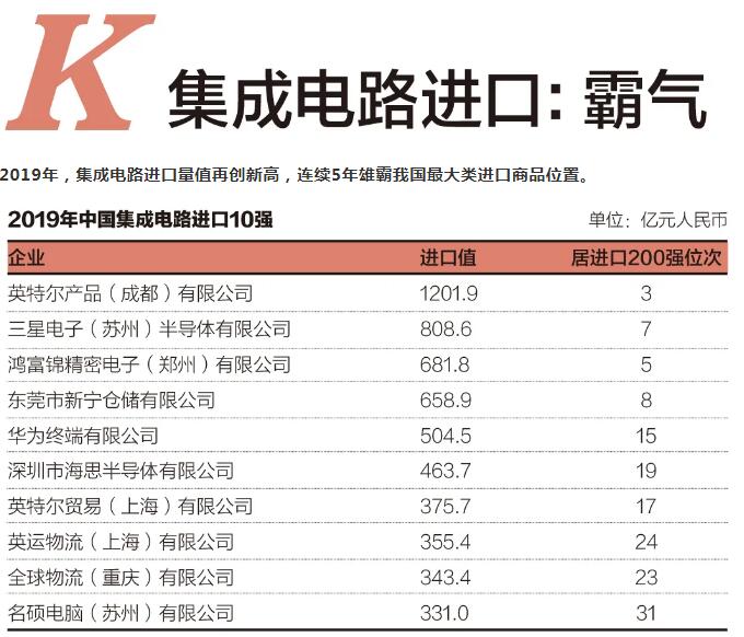 據(jù)海關(guān)統(tǒng)計(jì),2019年,我國(guó)集成電路進(jìn)口量值再創(chuàng)新高, 累計(jì)進(jìn)口4451.3億個(gè),增加6.6%;價(jià)值2.11萬(wàn)億元,增長(zhǎng)2.4%, 連續(xù)5年雄霸我國(guó)最大類進(jìn)口商品位置。巨大的國(guó)內(nèi)市場(chǎng)需求, 造就了我國(guó)規(guī)模龐大的集成電路進(jìn)口企業(yè)集群。2019年,我國(guó)集成電路進(jìn)口10強(qiáng)企業(yè)全部進(jìn)入外貿(mào)進(jìn)口200強(qiáng)總榜單前50位, 更有4家集成電路進(jìn)口企業(yè)挺進(jìn)外貿(mào)進(jìn)口企業(yè)前10強(qiáng)。2019年,我國(guó)集成電路進(jìn)口值占全球的37.2%,居全球第 一。即便是這樣霸氣的國(guó)際大買家,在國(guó)際經(jīng)貿(mào)關(guān)系發(fā)生變動(dòng)之際也難免經(jīng)歷動(dòng)蕩與挑戰(zhàn)。2019年我國(guó)集成電路進(jìn)口行業(yè)的赫芬達(dá)爾-赫希曼指數(shù)(HHI)為118.8,較2018年下降39.3個(gè)百分 點(diǎn),行業(yè)競(jìng)爭(zhēng)更加激烈。