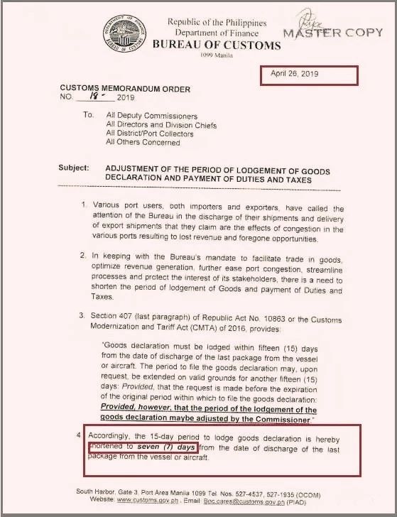 由于上述菲律賓海關(guān)公告發(fā)布于4月26日,因此該新規(guī)已經(jīng)開始執(zhí)行。出貨菲律賓的貨主貨代,請(qǐng)注意提單正本及時(shí)寄送,特別是有原產(chǎn)地證的客戶,提前準(zhǔn)備好,以免因?yàn)榍尻P(guān)資料不齊全延誤清關(guān)遭棄貨處理。
