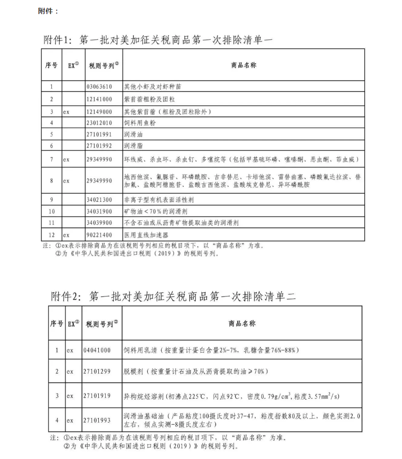 對清單二所列商品,自2019年9月17日至2020年9月16日(一年),不再加征我為反制美301措施所加征的關稅。已加征的關稅稅款不予退還。