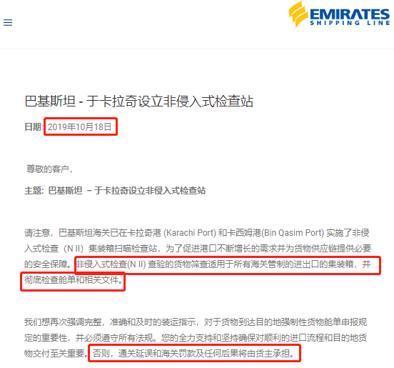 請注意,巴基斯坦海關(guān)已在卡拉奇港 (Karachi Port) 和卡西姆港(Bin Qasim Port) 實施了非侵入式檢查(N II)集裝箱掃瞄檢查站,為了促進港口不斷增長的需求并為貨物供應(yīng)鏈提供必要的安全保障。非侵入式檢查(N II) 查驗的貨物篩查適用于所有海關(guān)管制的進出口的集裝箱,并徹底檢查艙單和相關(guān)文件。