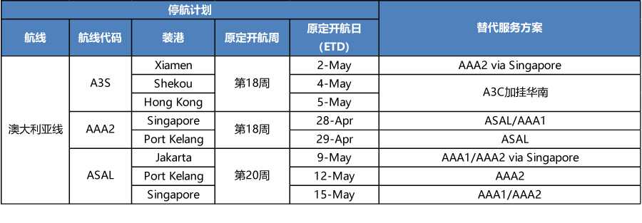 APL 4/5月多航線停航調(diào)整計(jì)劃