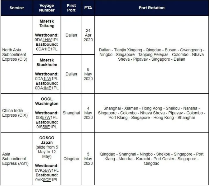 東方海外4-5月停航調(diào)整計(jì)劃