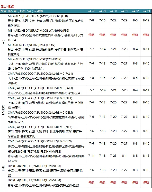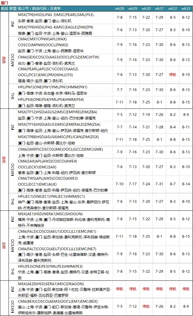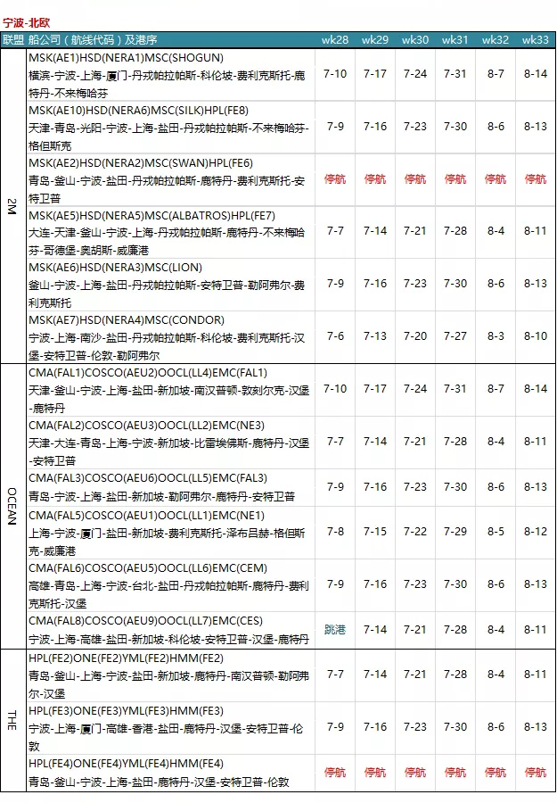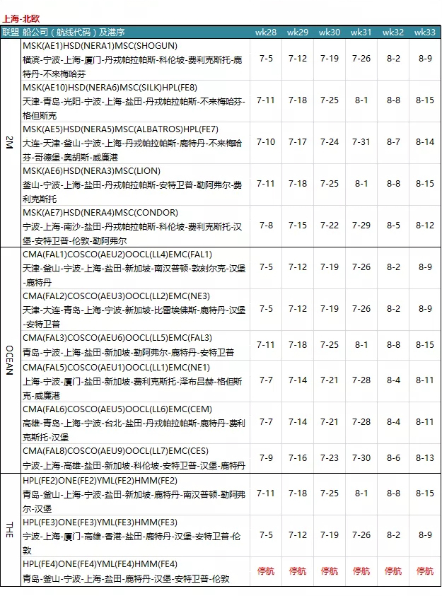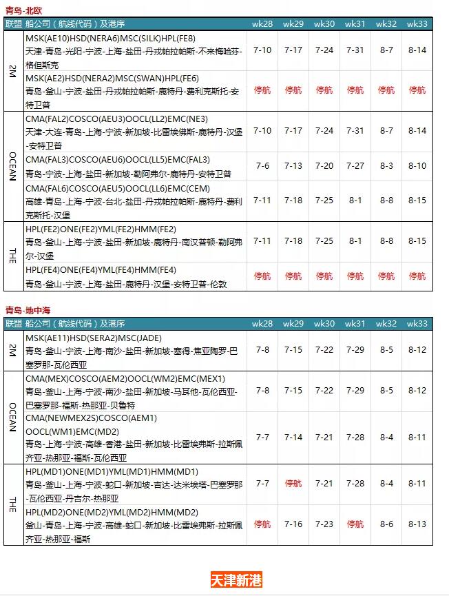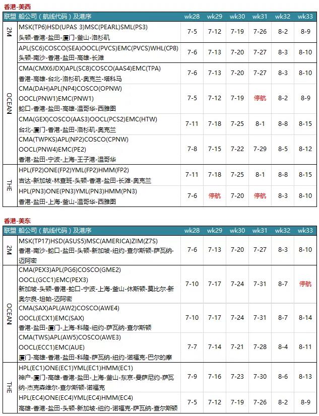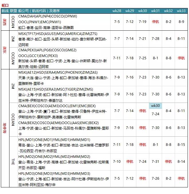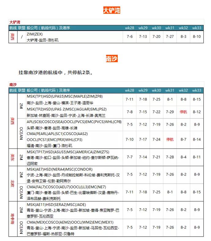 7月各大聯(lián)盟停航匯總;哪個港口受影響最大?