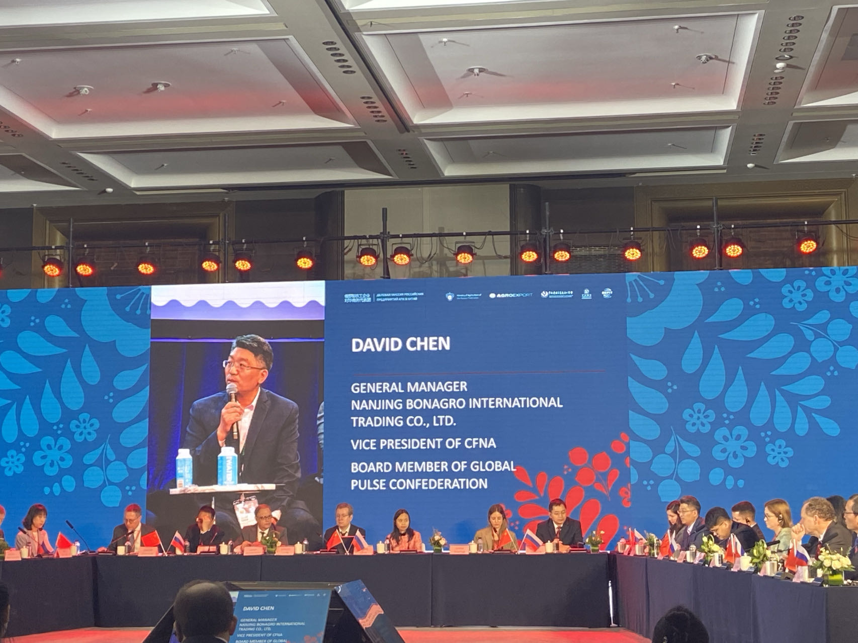 副會(huì)長(zhǎng)單位南京邦農(nóng)國際貿(mào)易有限公司董事長(zhǎng)陳長(zhǎng)偉出席了中俄農(nóng)業(yè)經(jīng)貿(mào)合作洽談會(huì),并就中國對(duì)谷物和豆類的需求情況進(jìn)行了發(fā)言。
