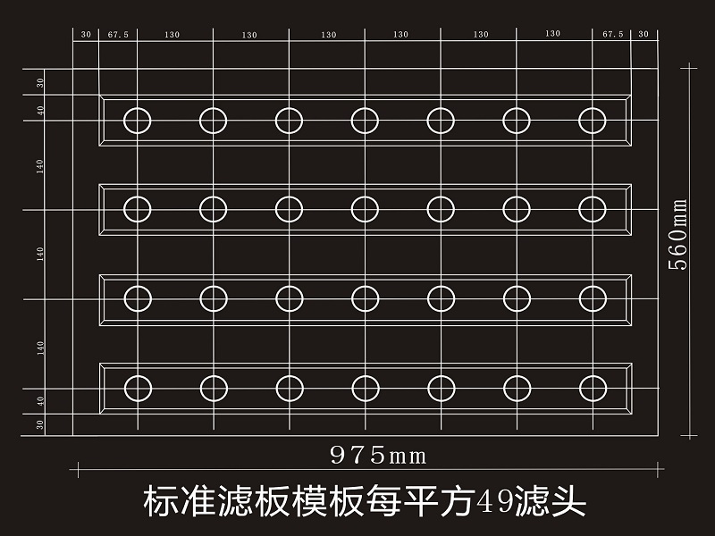 (B型整體濾板模板選型:縱向間距130mm,橫向間距140mm,49個(gè)濾頭/㎡)