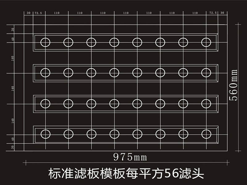 (B型整體濾板模板選型:縱向間距110mm,橫向間距140mm,56個(gè)濾頭/㎡)