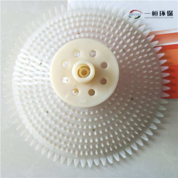 ABS旋混式曝氣器采用多層螺旋切割的型式進行充氧曝氣,當氣流進入混流型曝氣器時,氣流首先通過二道螺旋切割系統(tǒng)切割后進入下層的多層鋸齒形布氣頭,進行多層切割,使氣泡切割成微氣泡,這樣大大提高了氧的利用率,具有布氣均勻,充氧效率高的特點。 適用于各大、中、小型的工業(yè)廢水和城市生活污水活性污泥生化處理,生物接觸氧化法污水處理的曝氣裝置以及調節(jié)池的預曝氣,廣泛適用于生化處理的推流式的及混合型的各種曝氣池內。